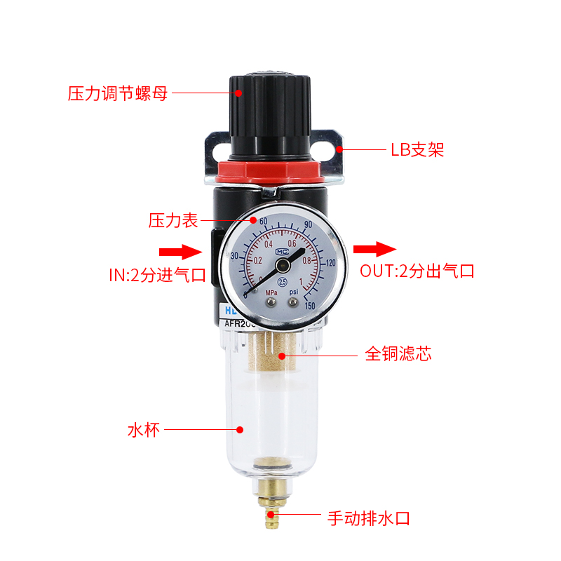 Gas Pressure-reducing valve AFR Air compressor Oil-water separator filter Air pressure regulating valve