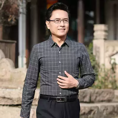 Dad spring long sleeve shirt 40-50 years old middle-aged and elderly cotton thin shirt middle-aged man no ironing shirt