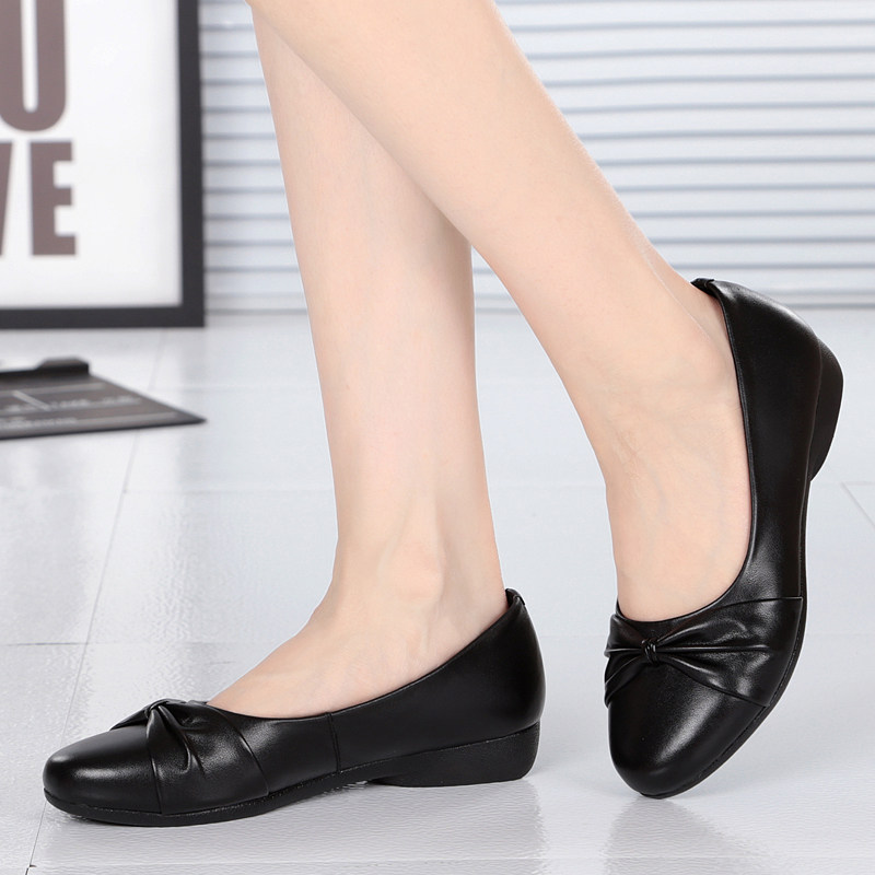 Snow Yierkang spring new shallow leather women's bag shoes flat-heeled soft-soled middle-aged mother flat-bottomed women's leather shoes