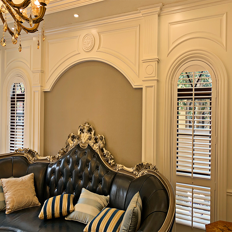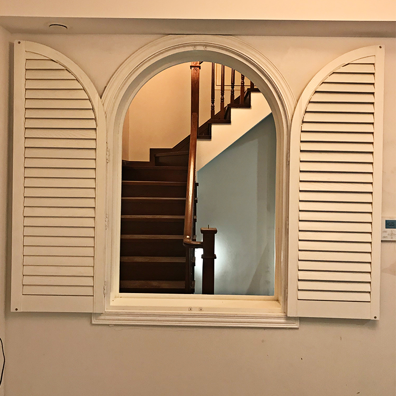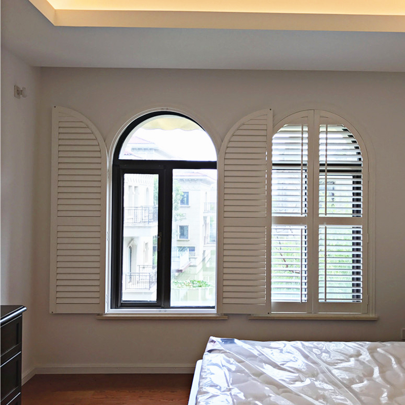 Hongsenzo-style arc shaped alignment activity solid wood shutters toilet balcony bathroom dimmable customizable