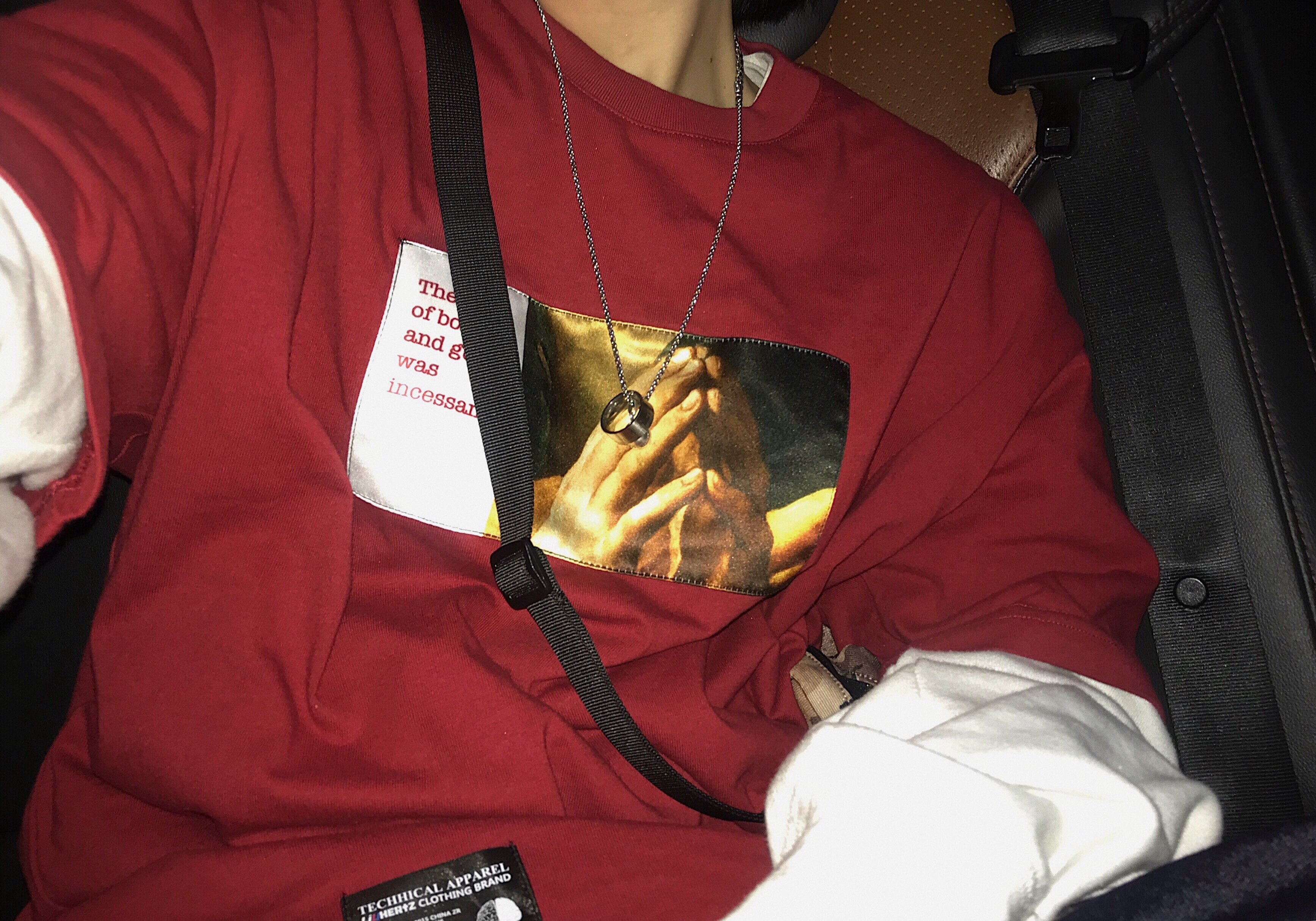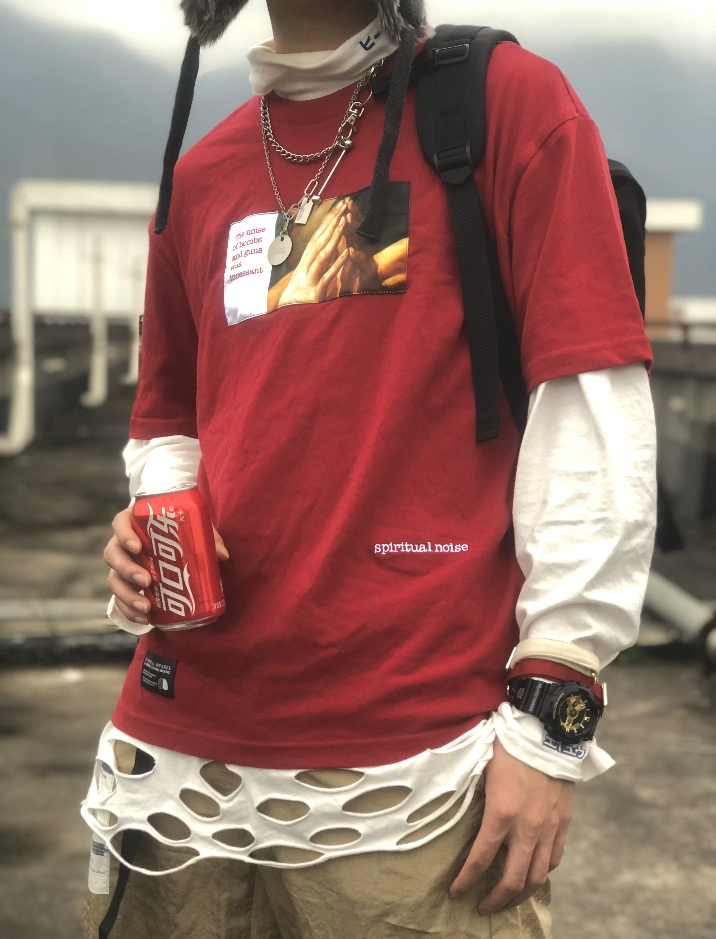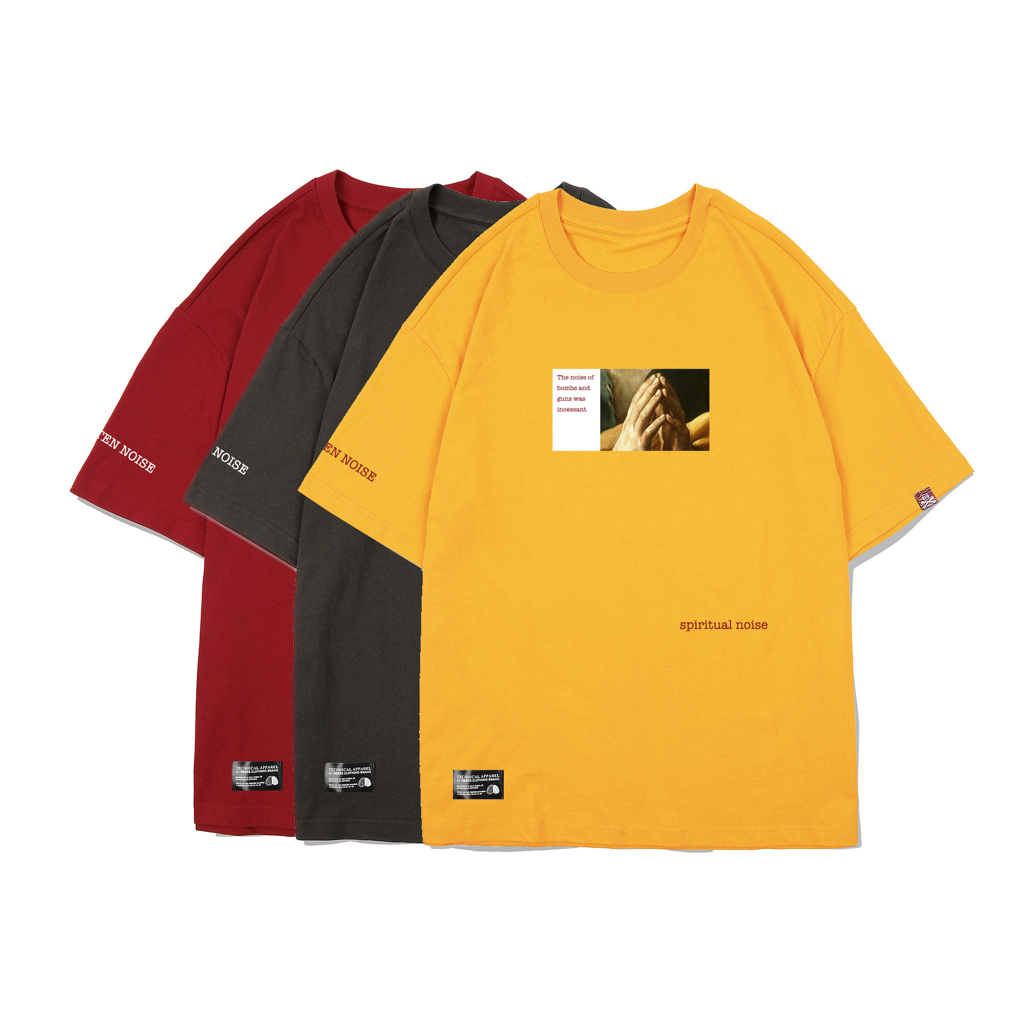 OG tide shop LIUHERTZ religious prayer patch embroidery loose cotton tide brand five-point sleeve T-shirt personality short sleeve