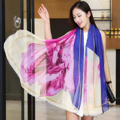 Chiffon silk scarf big flower Flower long version sunscreen female spring scarf Four Seasons light gauze towel oversized beach scarf shawl