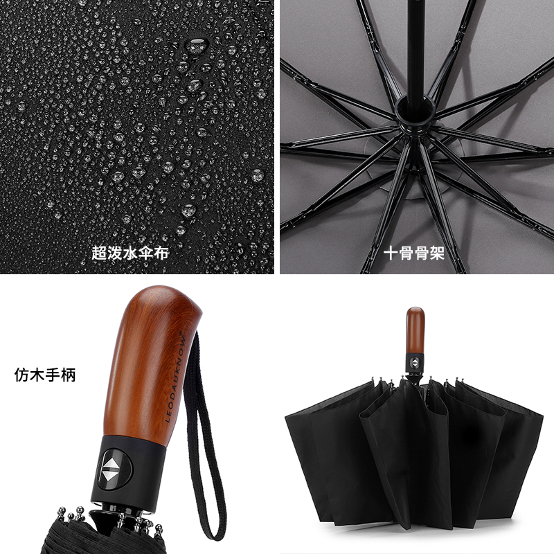Super 115cm imitation wood handle business ten-bone windproof single double automatic anti-rain three folding umbrella men
