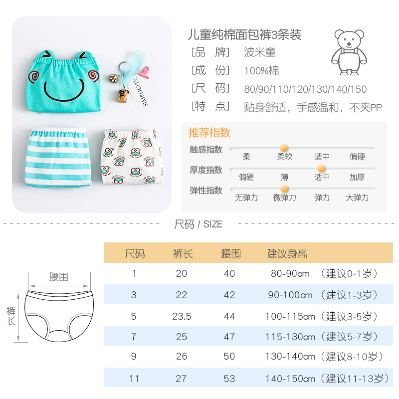 Children's underwear pure cotton briefs head shorts baby children's middle-aged and older boys and girls do not clip pp bread pants