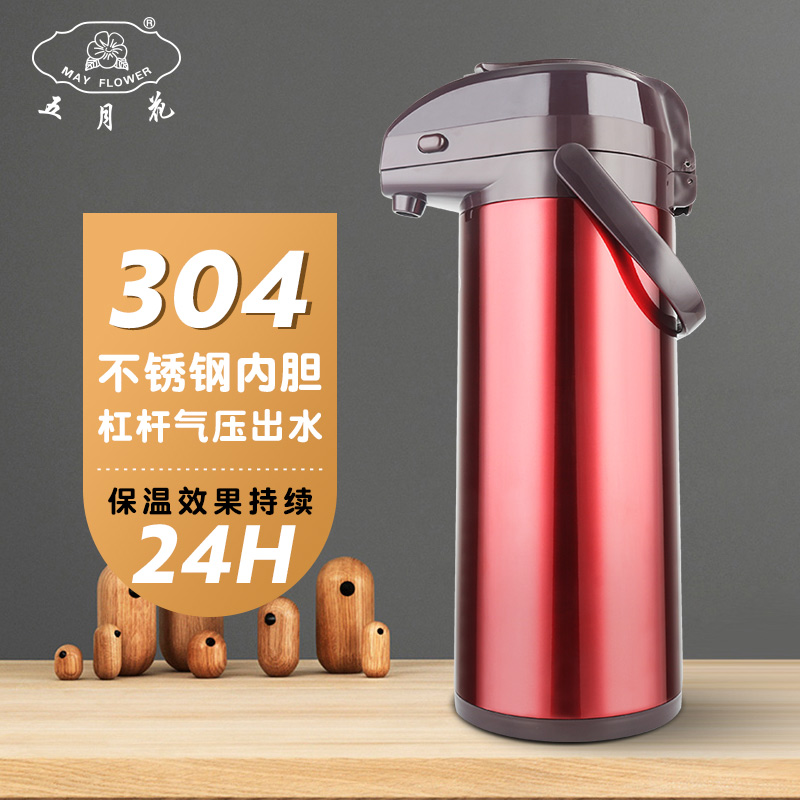 New product Mayflower pneumatic thermos inside and outside Stainless steel thermos Office pressing thermos Household