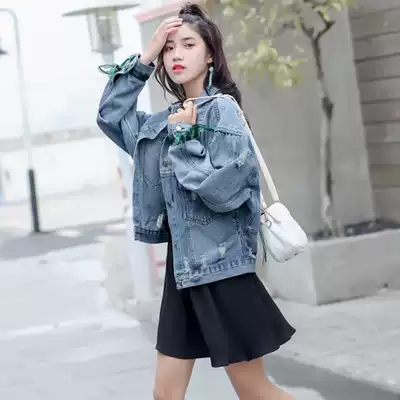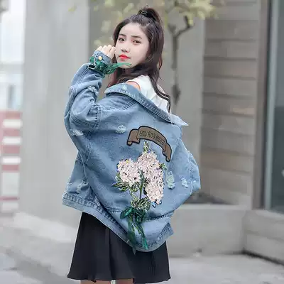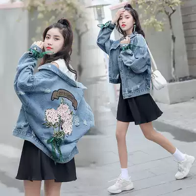 Denim coat female 2021 New loose Korean bf loose student Joker embroidery short denim Spring and Autumn Tide