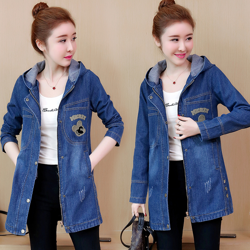 Denim Jacket Woman Medium Long Version Loose Bf Even Cap 2022 Spring Autumn Season New Korean Version Printed Casual Denim Wind Suit