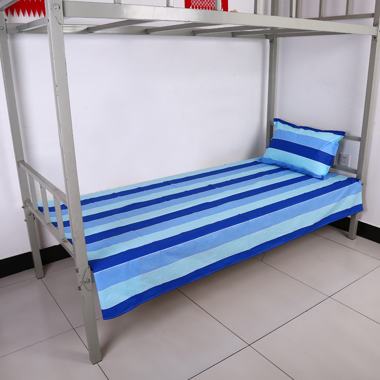Pure Cotton Plain Weave Double Blue Strip Sheet Single Student Dorm Room Up And Down Blue Streaks Covered With Hood Pillowcase Three Sets