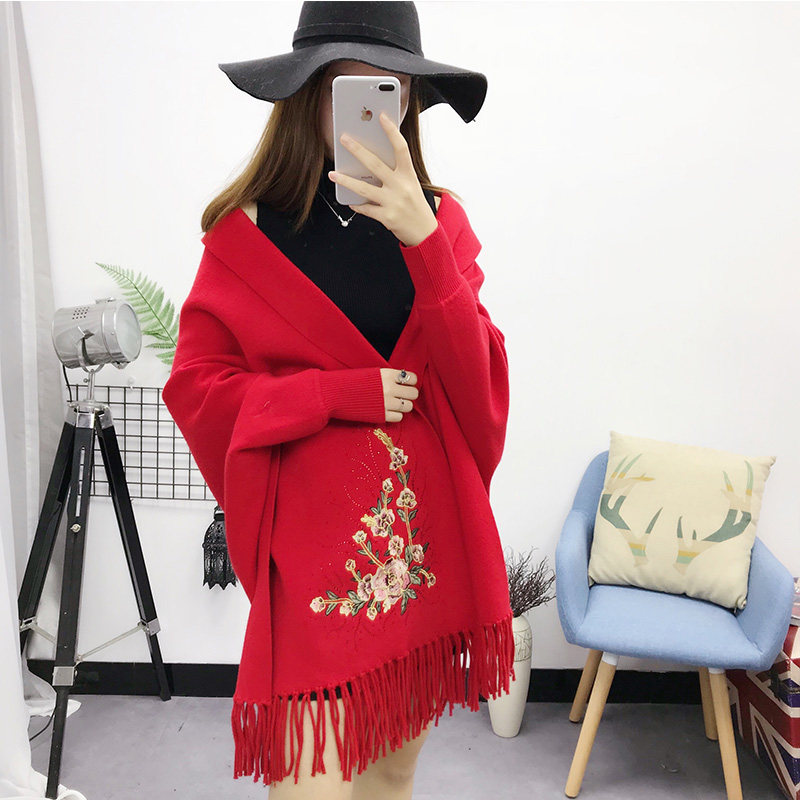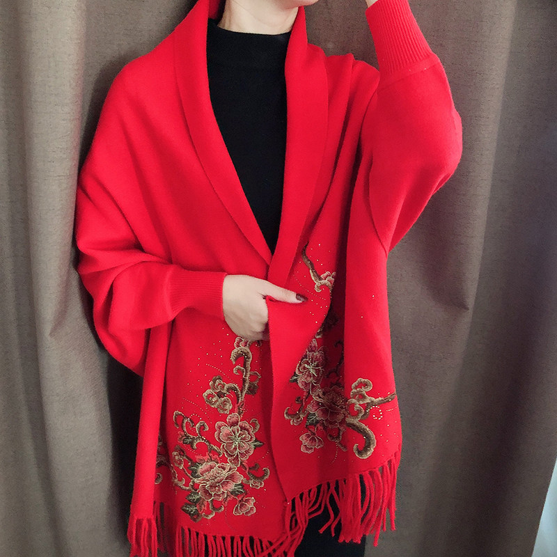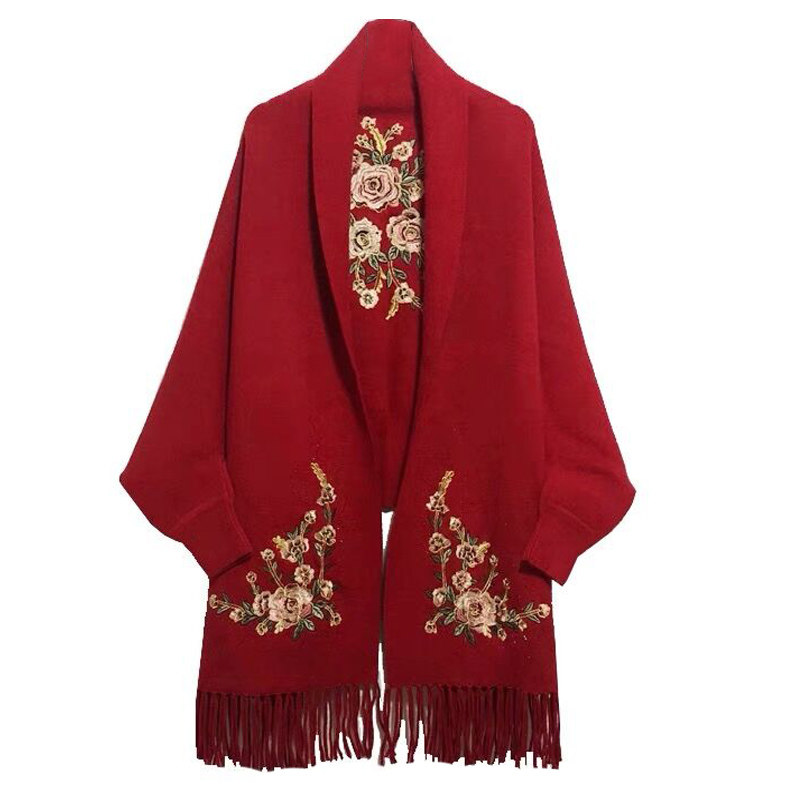 New thick cashmere tassel cloak shawl female 2022 spring and autumn travel coat cheongsam knitted mother cloak dual-use