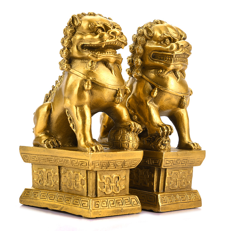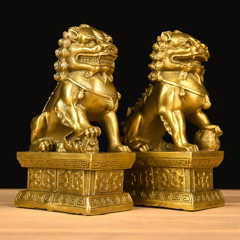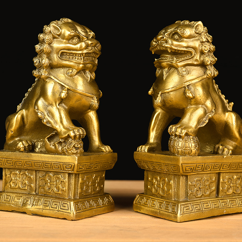 Bronze lion pure copper pendulum a pair of palace gate big number small number home decoration pendulum piece handicraft