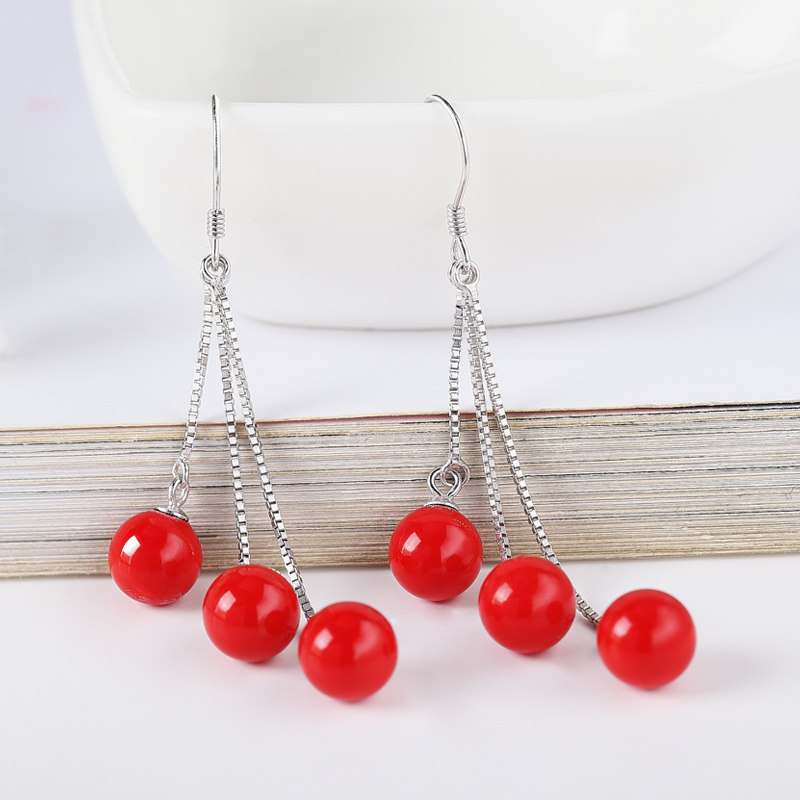 925 sterling silver earrings mother oyster pearl earrings earrings female Korean net red long earrings silver jewelry hypoallergenic