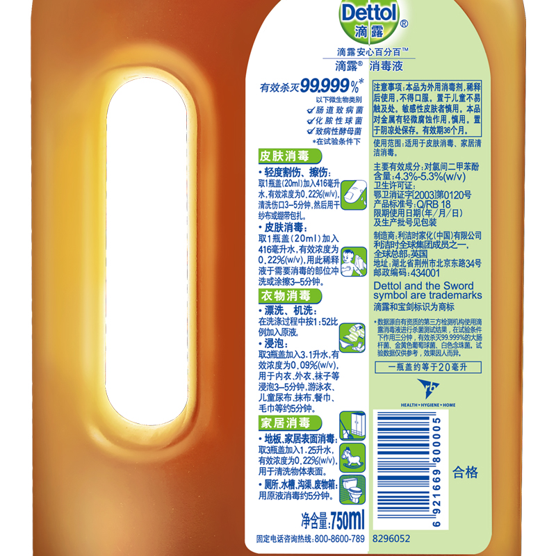Dettol classic Disinfectant 750ml Household clothing Home floor skin multi-purpose anti-mite sterilization 99 999%