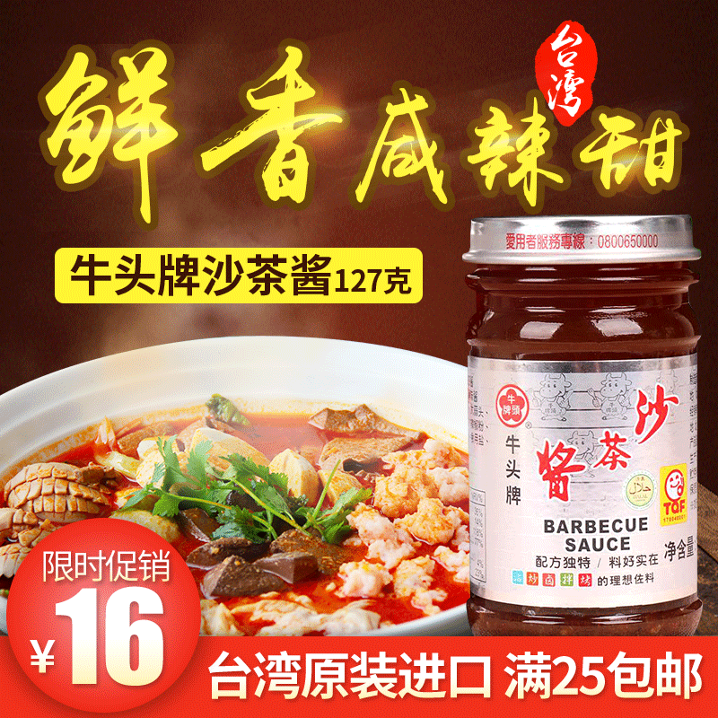 Taiwan imports Authentic Bull's head Sand Tea Sauce 127g Sand and Noodle Sauce hot pot Ingredients Dip Sauces Non-Chaoshan Specii