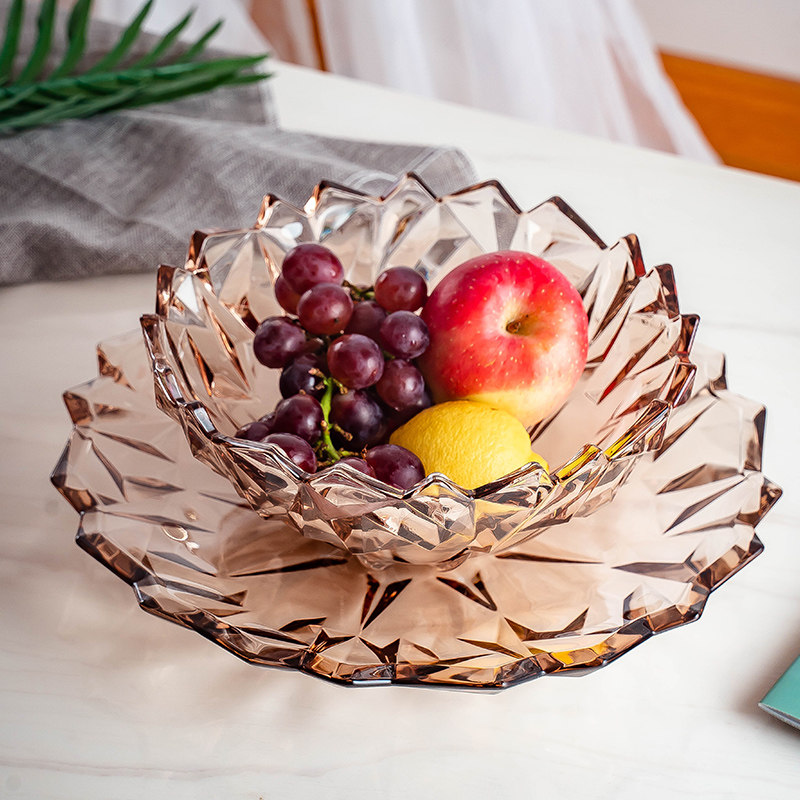 3 small fruit plates triangular transparent transparent large colorful large amber large lake blue large transparent ice flower fruit bowl golden ice flower fruit bowl coffee color ice flower fruit bowl transparent ice flower fruit bucket golden ice flower fruit bucket coffee color ice flower