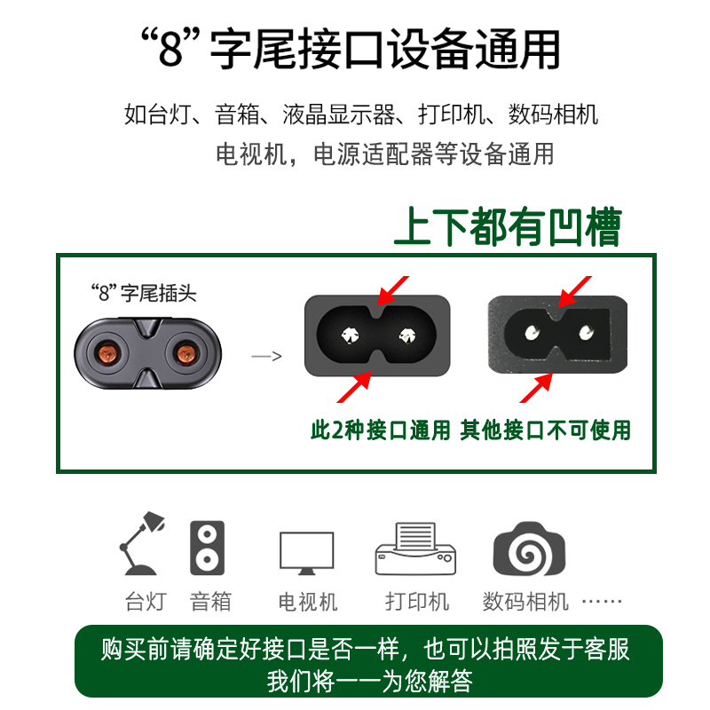 Two holes 8 character power cord 8 word power cord (elbow straight tail) two plugs Elbow 8 word power cord 8 word power cord (straight head curved tail)
