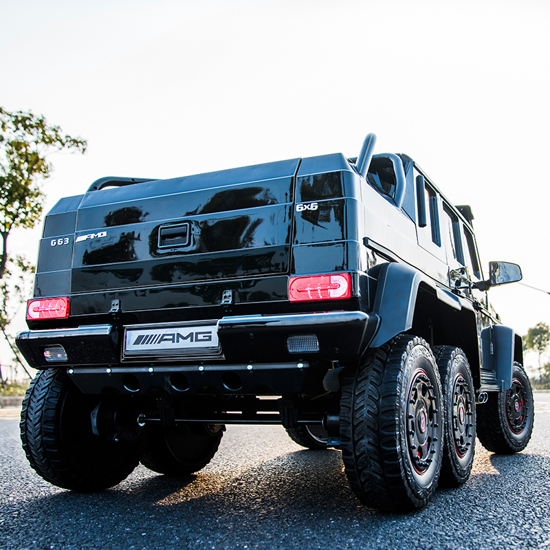 (Cool black) 2 12V large battery portable charging six-wheel drive two-seat swing rubber soft wheel