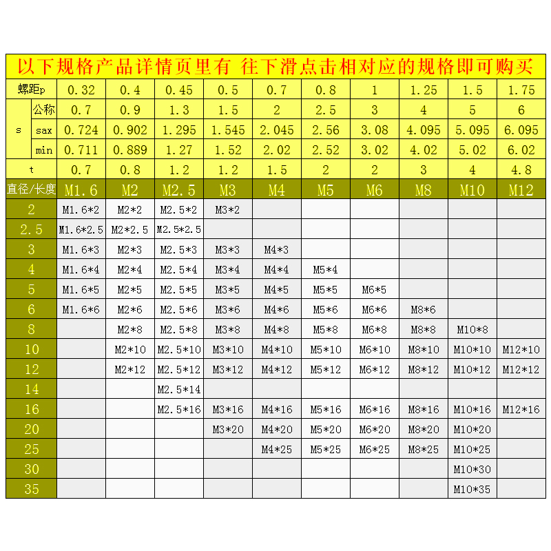 M2 * 2 (number 30) M2 * 2 5 (number 30) M2 * 3 (number 30) M2 * 4 (number 30) M2 * 5 (number 30)
