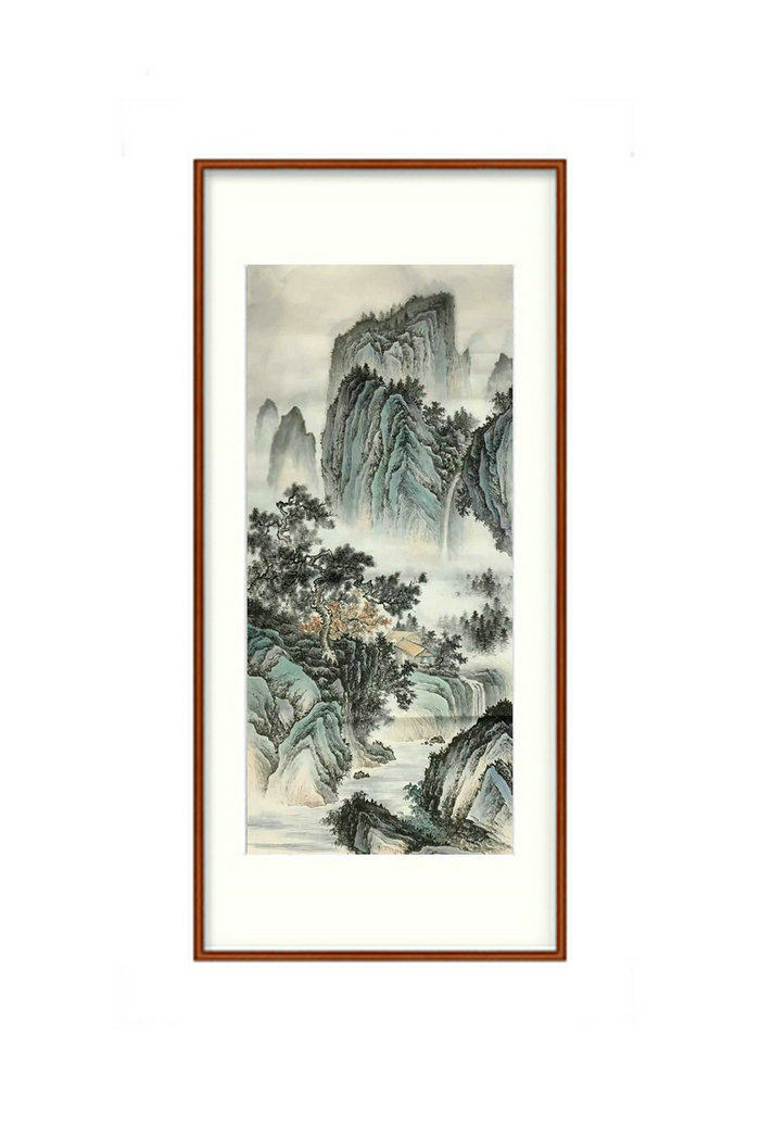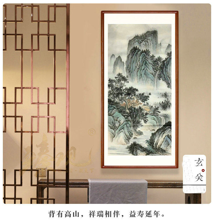 Pure hand painted four feet in the middle of the ancient landscape State painting Water ink green Xuan paper painting core office Living room Decorative Character Painting
