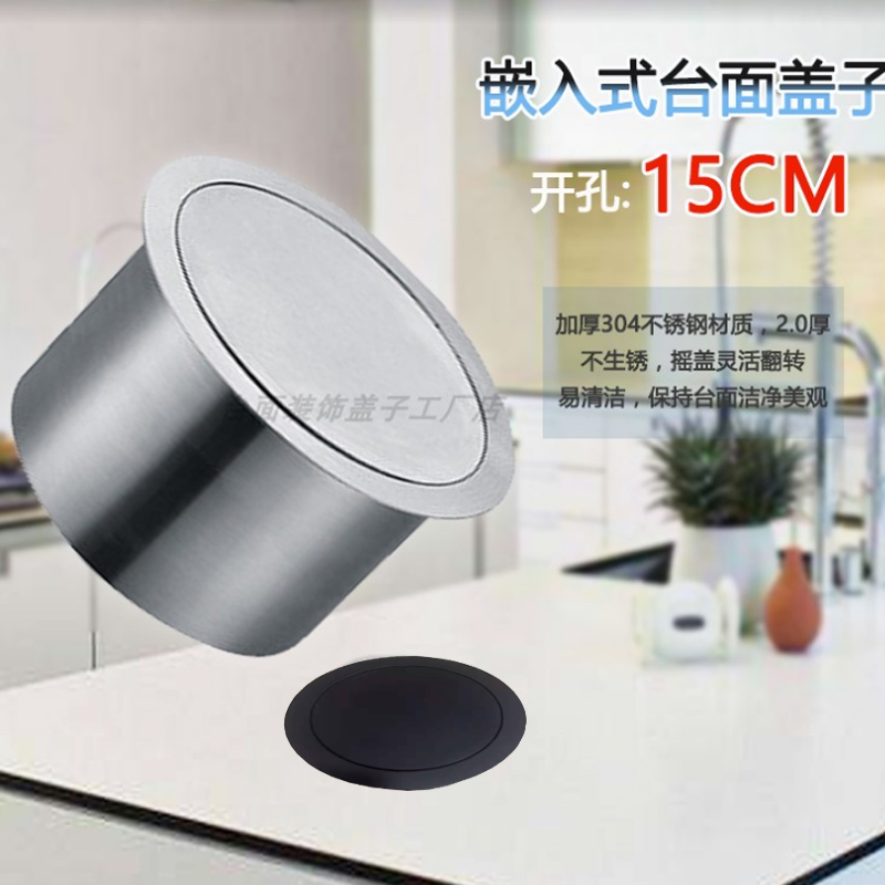 Large round kitchen built-in trash can 304 stainless steel sink built-in shake cover engineering decoration cover