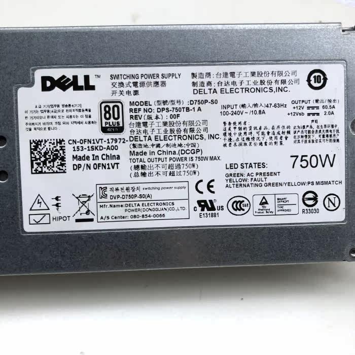 DELL R510 R510 R910 T710 750W T710 FN1VT FN1VT D750P-S0 server power supply