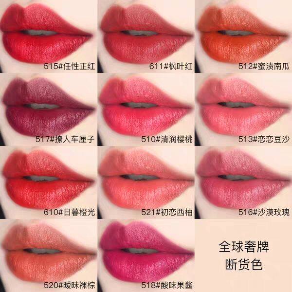 510 Clear Moisturizing Cherry 512 Dense Pumpkin 513 Romance Bean Sand 515 Ren Zhengred (hot pin color) 516 Desert Rose 517 Giant Cherry (Hot Pin Color) 520 Warming Naked Brown