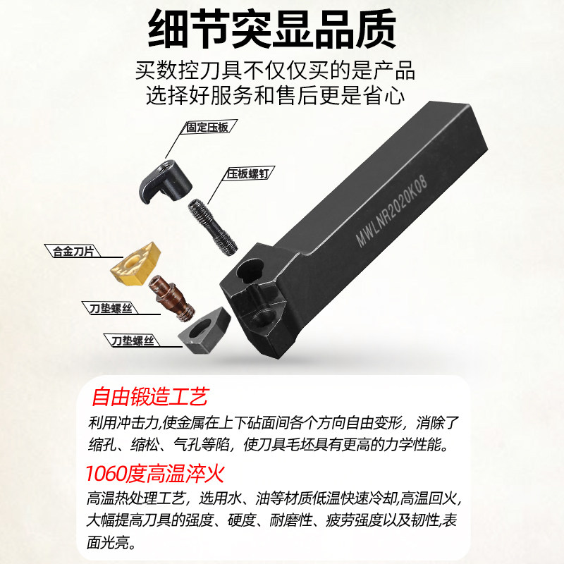 CNC knife daquan outer circle turning knife 95 degrees peach shaped mwlnr2020 knife row ordinary car peach type turning tool rod