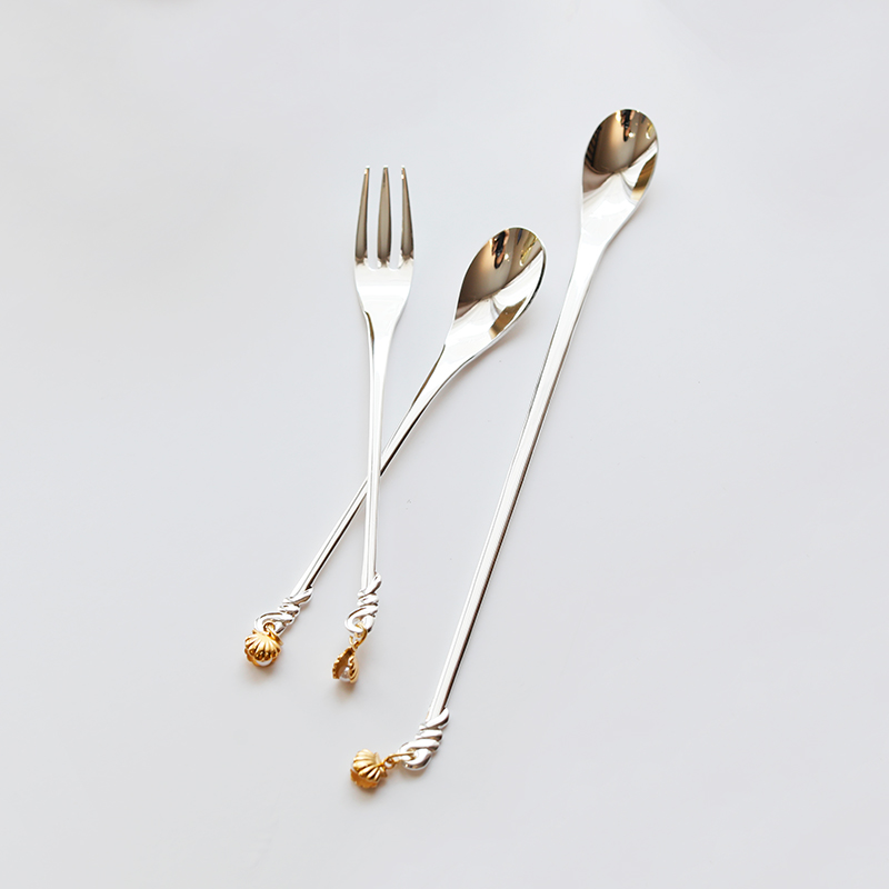 Mino Japan High Mulberry Metal Coffee Spoon Stainless Steel Silver Plated Shell Pearl Fork Spoon Fruit Fork Stir Stick