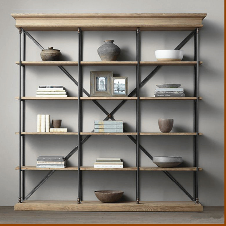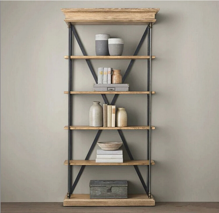 Nordic solid wood Wrought iron partition shelf shelf Floor-to-ceiling display Creative partition shelf display shelf bookshelf screen