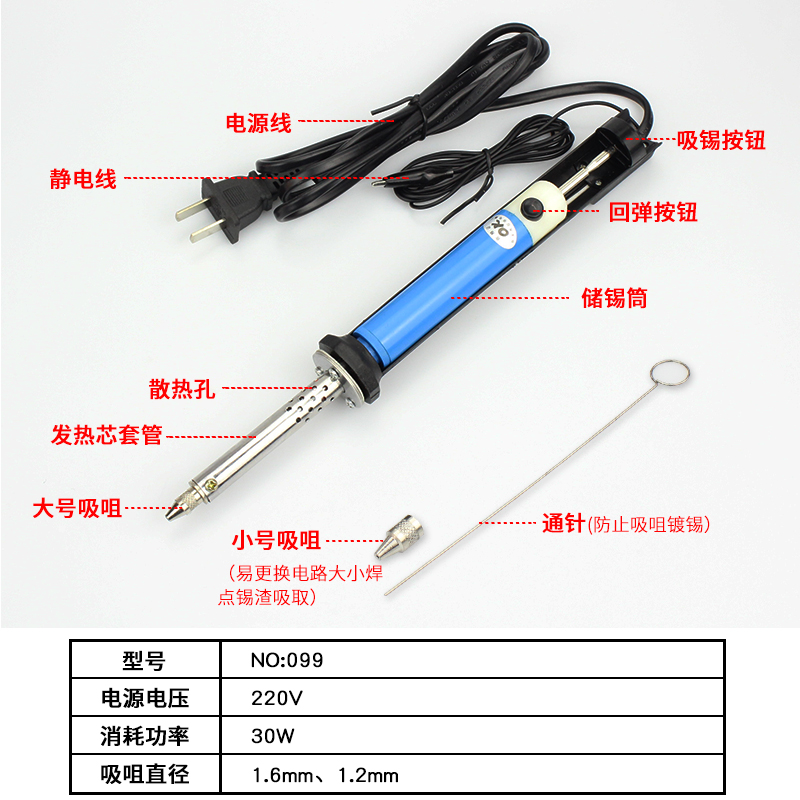 Electric dual-use suction tin gun electric soldering iron electric suction gun tin gun solder pump strong tin suction device tin dissolving device desoldering