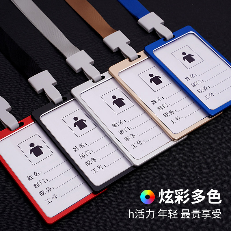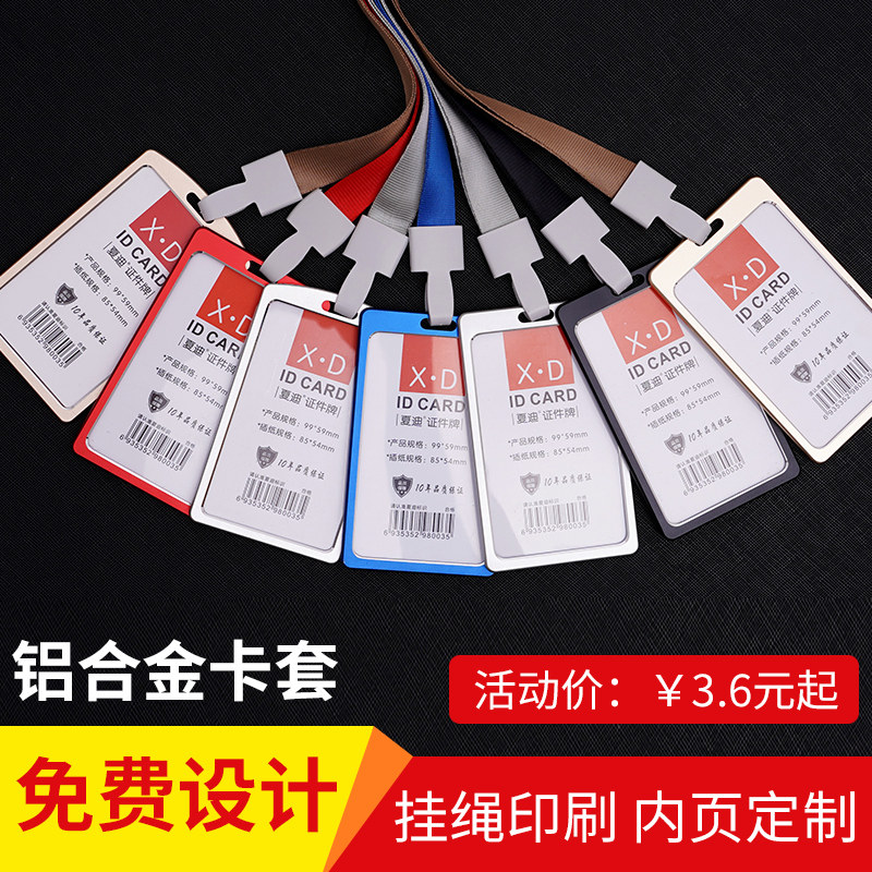 Aluminum alloy work card transparent card set ID set Company brand tag with lanyard Large metal badge badge Staff work card School card work card set Student card set Protective sleeve custom