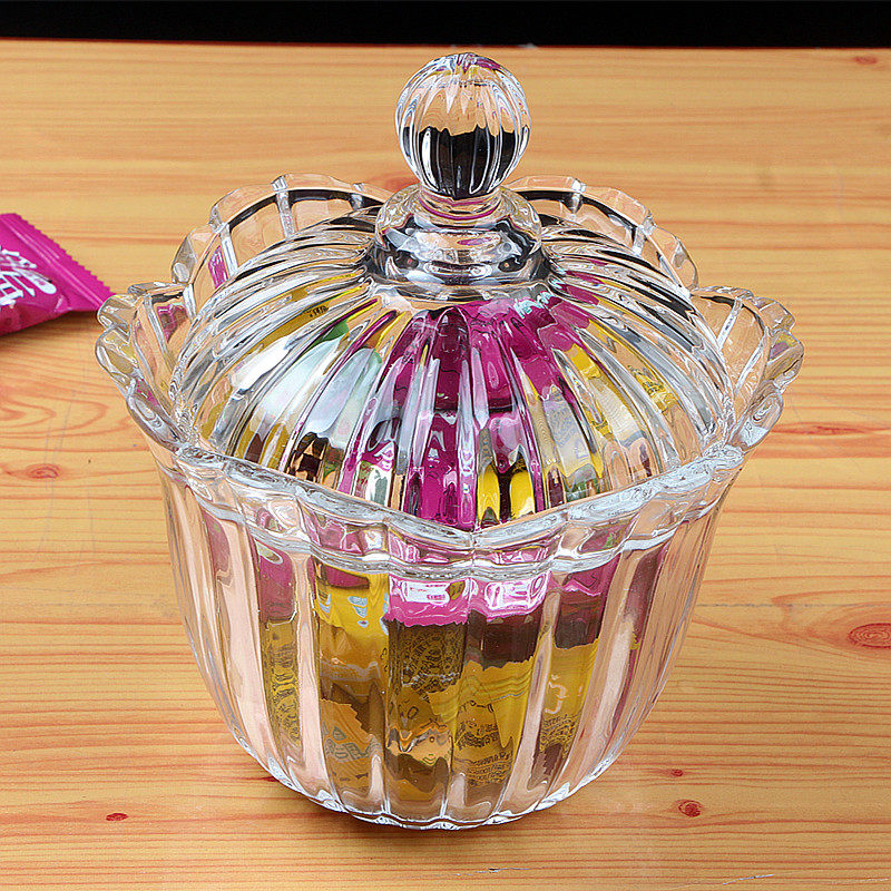 European-style crystal glass candy jar candy box living room ornaments fruit plate melon seed snack storage storage jar