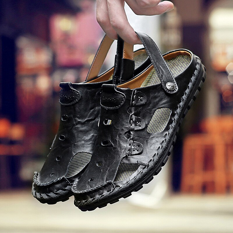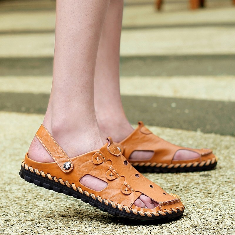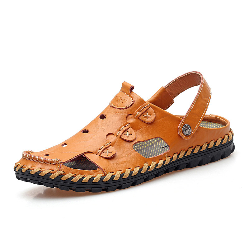 2022 new men's summer men's shoes casual leather hole shoes Baotou sandals fashion half slippers beach England