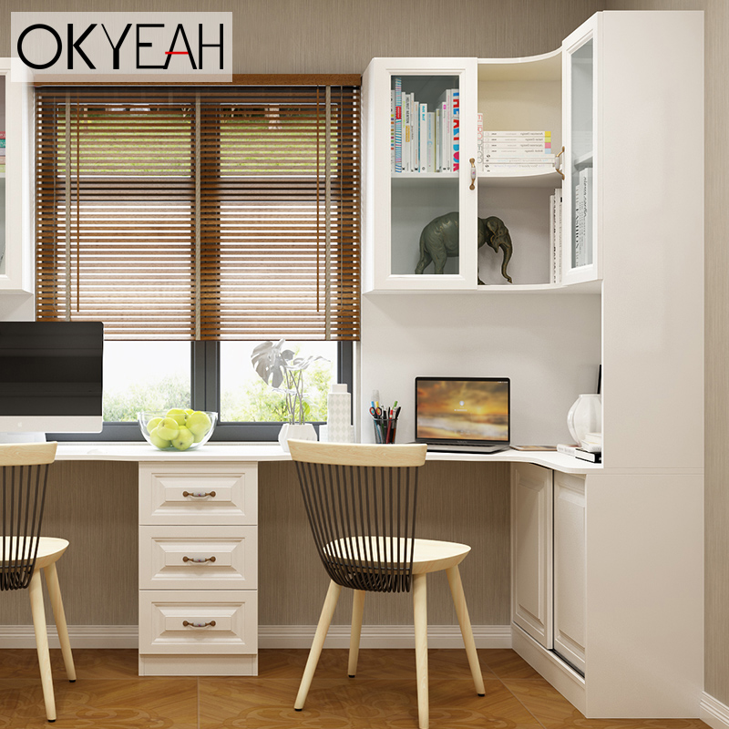 okyeah Corner computer desk Bay window bookcase desk One-piece combination Home double student desk desk