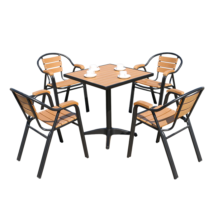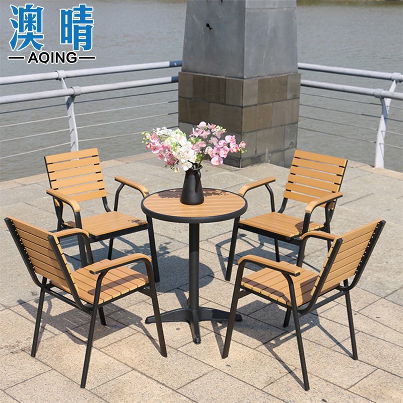 Outdoor tables and chairs garden anti-corrosion wood open-air balcony coffee outdoor leisure aluminum alloy plastic wood garden table and chair combination