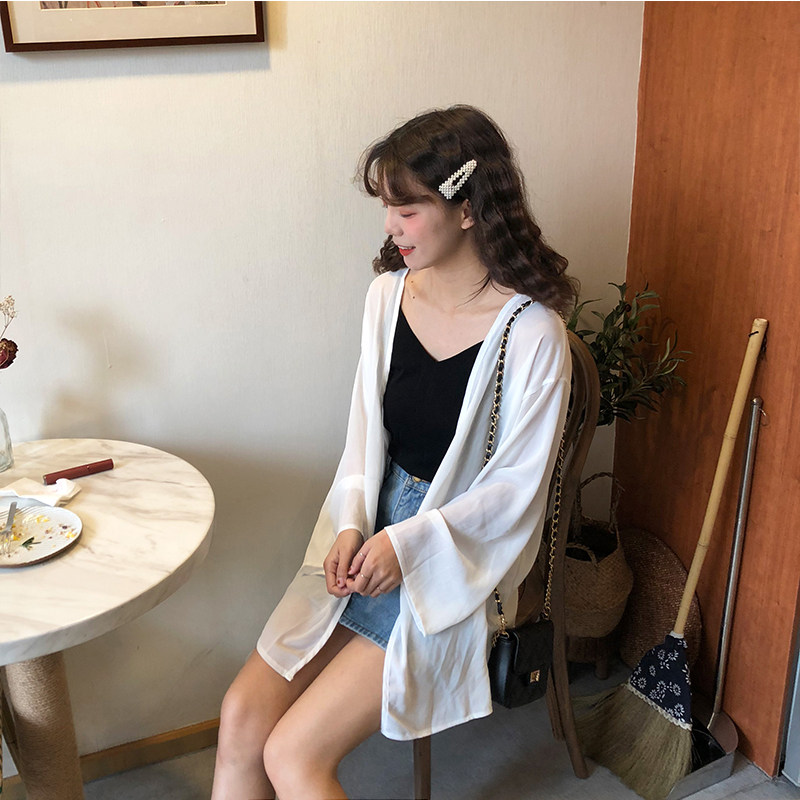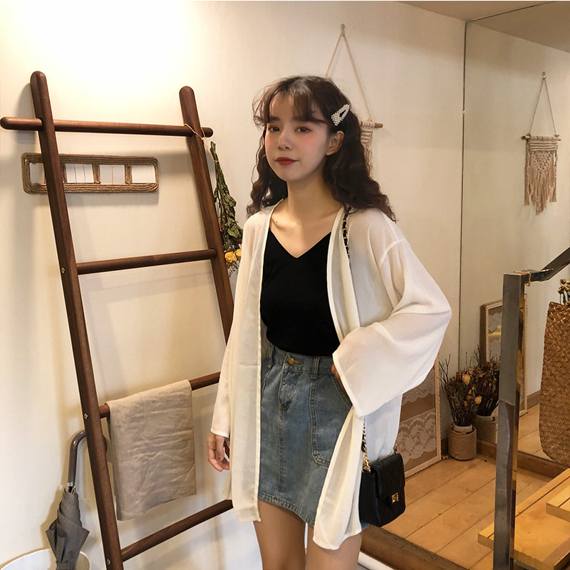 Summer 2021 new fairy sunscreen women's long cardigan chiffon very fairy coat thin sunscreen coat