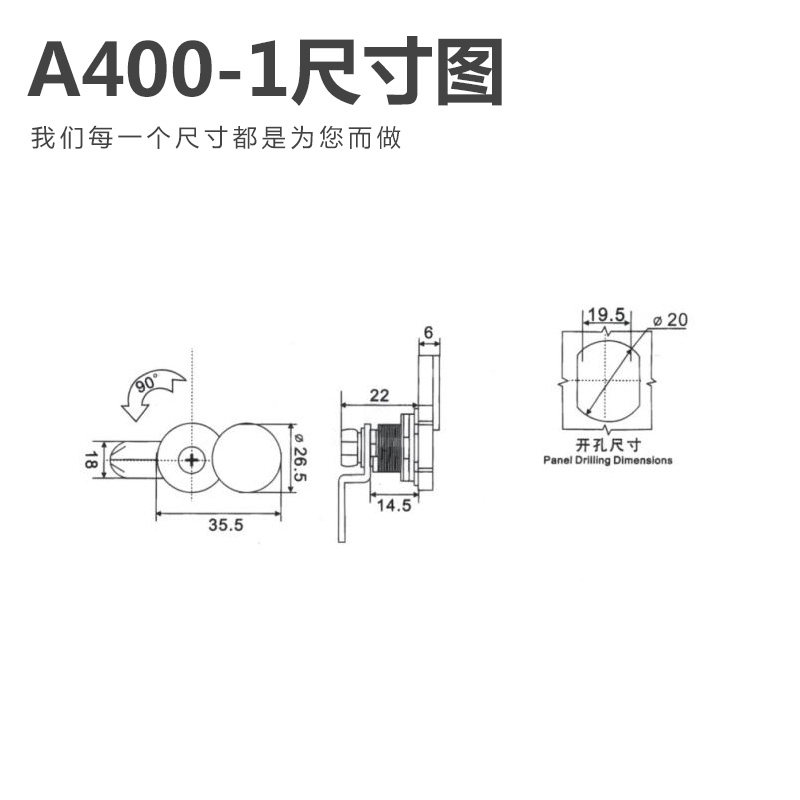 Zhuguan MS-A400-1 outdoor swivel tongue lock distribution cabinet door lock cross copper core waterproof and rain-proof cylindrical lock