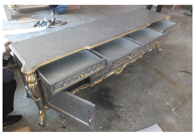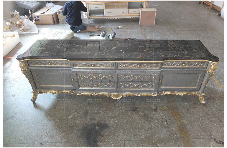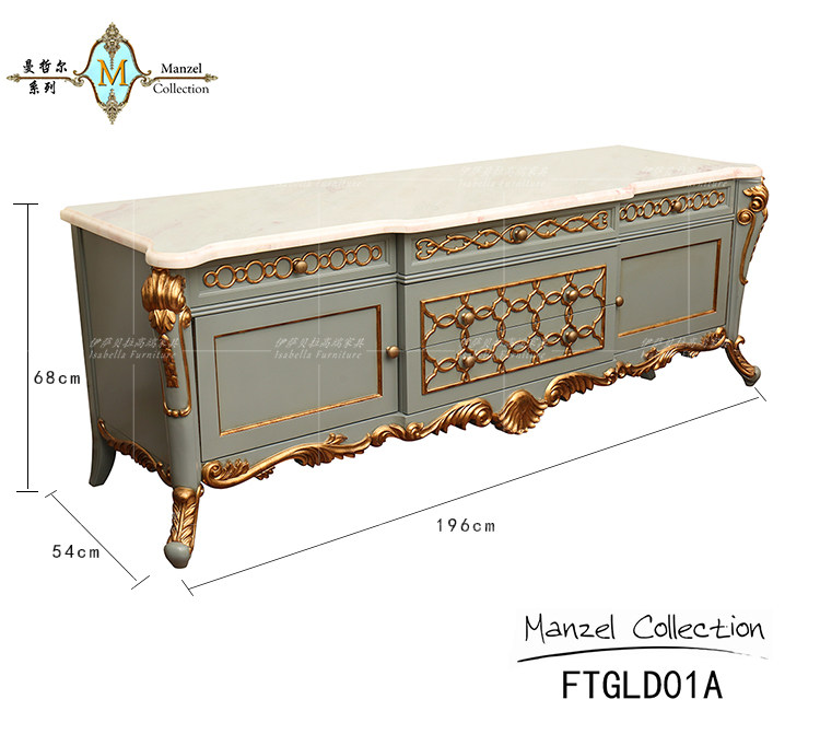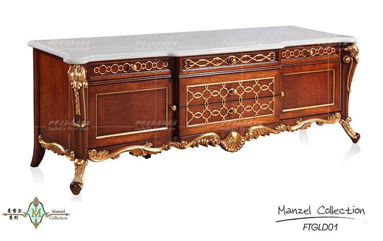 Isabella Law style palace windy full solid wood hand engraving gold silver foil marble villa living room TV cabinet