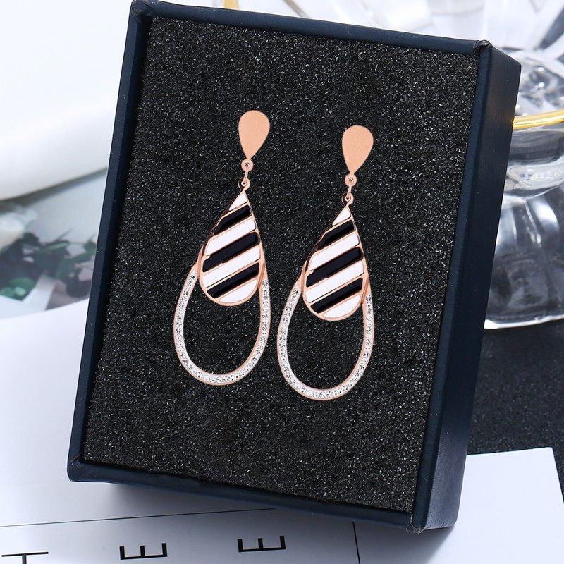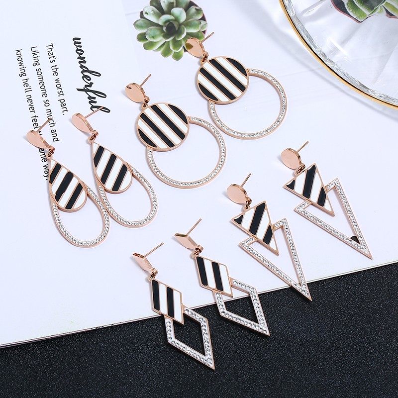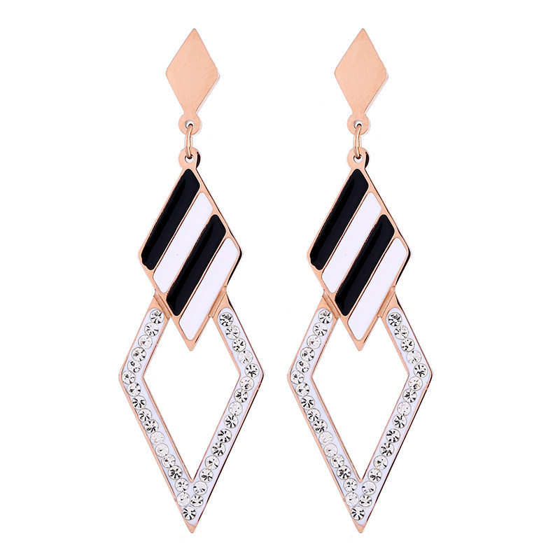 Day Korea Temperament Rose Gold Titanium Steel Geometric Rhomboid Earrings Woman 100 hitchhiker with a face and thin ear Ear Ornaments