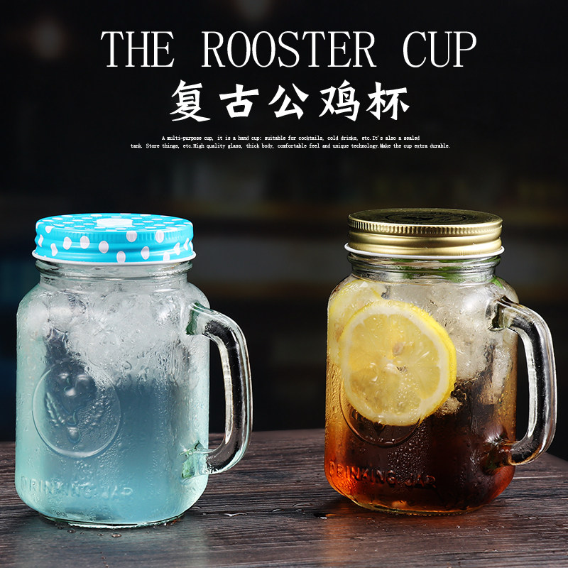 Summer rooster cup Mason with lid straw creative tide transparent glass with a drink juice milk tea milkshake cup-Taobao