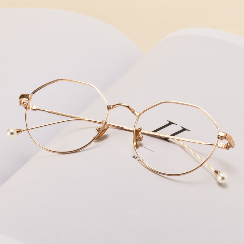 Net Red style retro Eye frame Female Myopia Personality Pearl Spectacle Frame Flat Light Goggle Polygon Round Frame Vegan