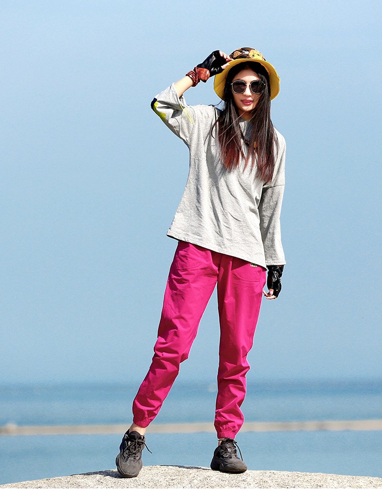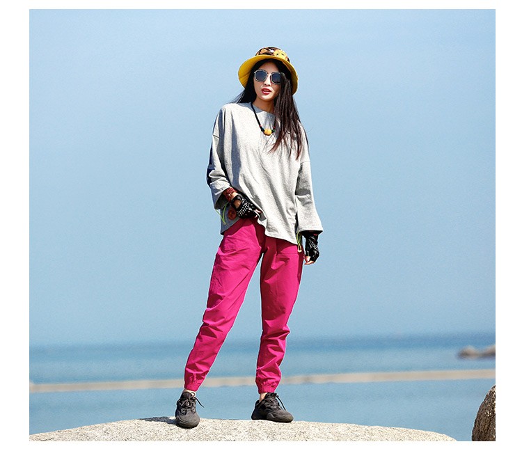 Naughty Outdoor Female Loose New Frontier Cotton Alphabet Printed Long Sleeve Cotton T-shirt Breathable sweat-absorbing sunscreen hiking
