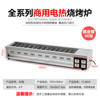 Electric heating smoke-free black gold pipe barbecue grill commercial stainless steel black gold rigid electric oven light-wave pipe string burning machine commercial