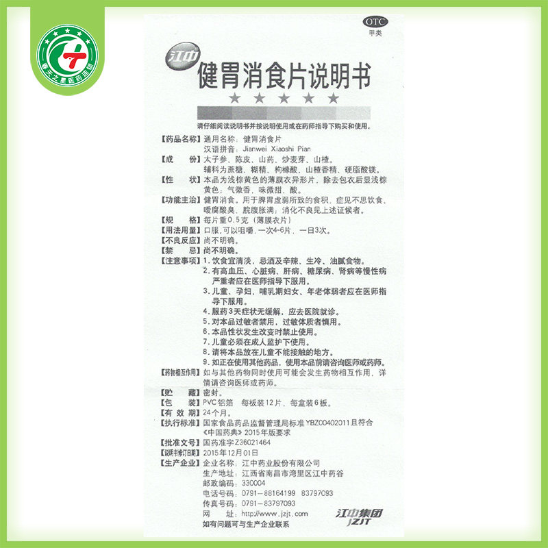 Jiang Zhongjiang Cartridge Digestion Tablets 72 pieces of stomach dissipation dissipation of spleen and stomach