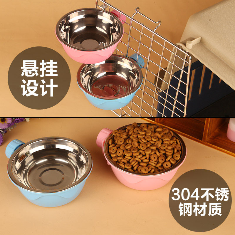 Pet Food Basin Suspended Drinking Water Bowl Stainless Steel Dog Bowl Cat Cage Stationary Cat Basin Cat Bowl pooch