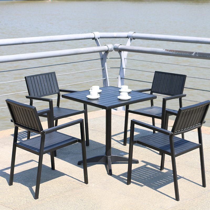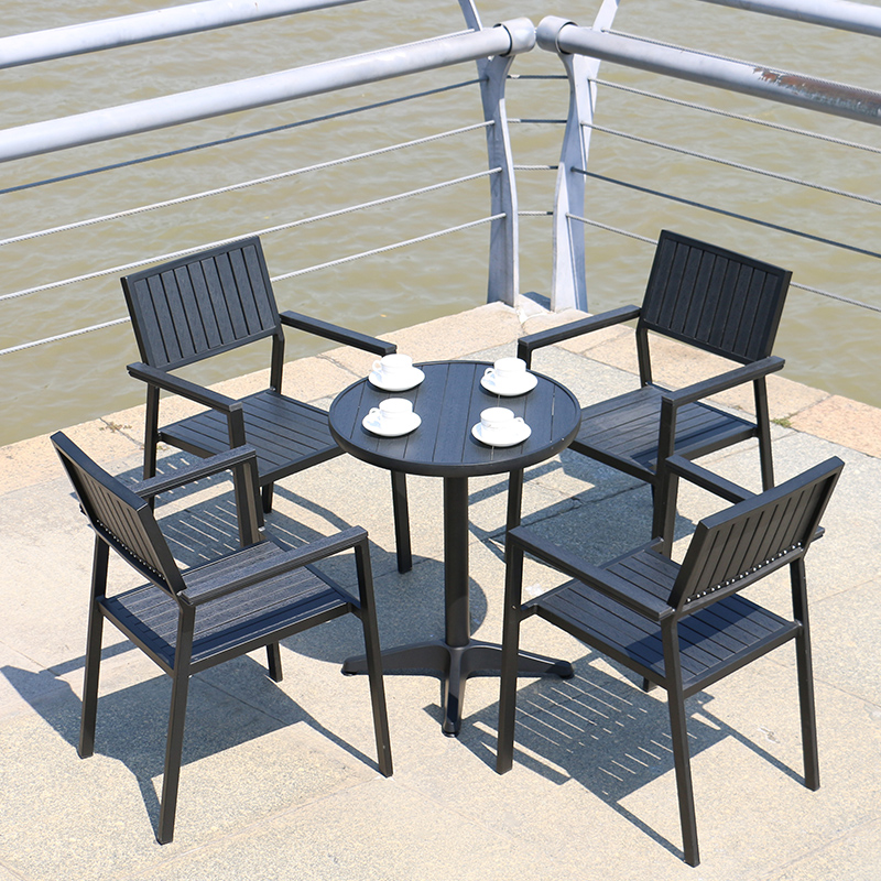 Outdoor plastic wood tables and chairs rain-proof courtyard leisure balcony outdoor cafe milk tea shop shop outside anti-corrosion tables and chairs