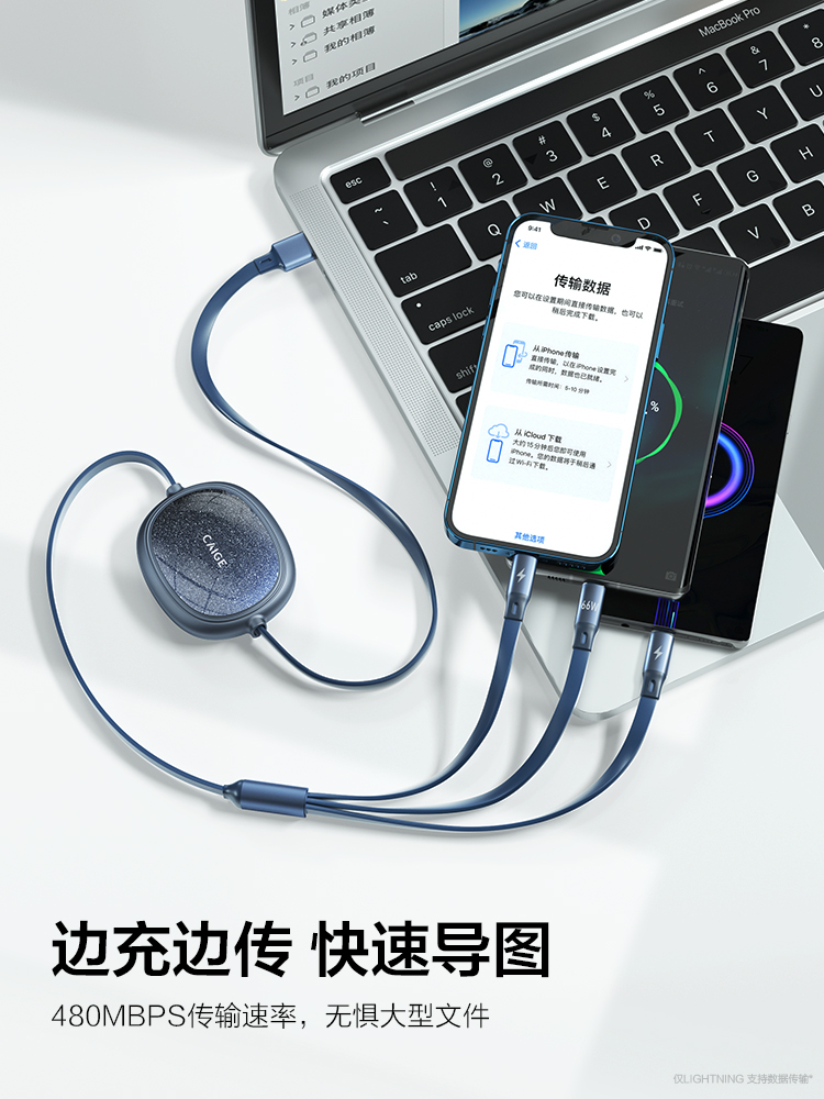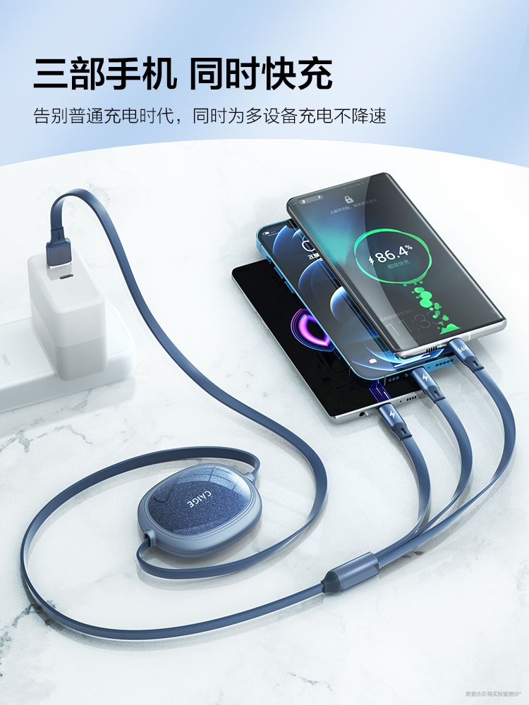 66W data cable three-in-one charging cable fast charge one-to-three mobile phone two-in-one type-c suitable for Apple Huawei multi-function extension iPhone Android dual-use Xiaomi three-head car