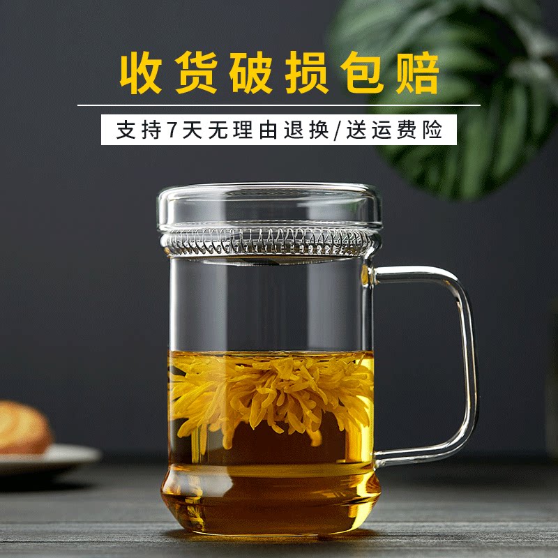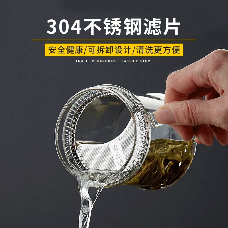 Green Changming glass water cup crescent filter tea cup high temperature resistant transparent with cover to special cup of office cup bubble green tea
