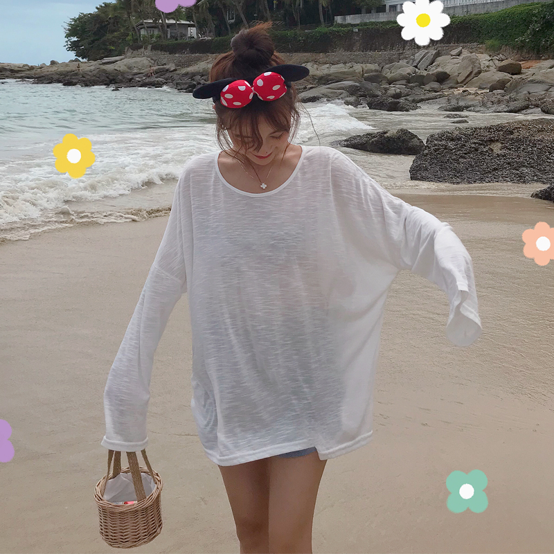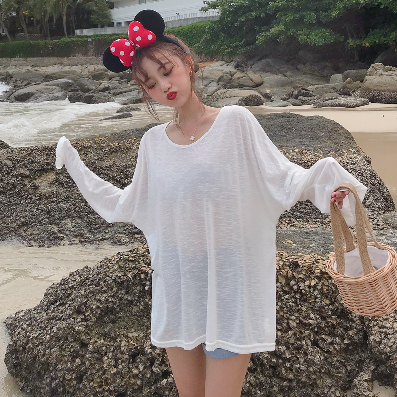Seaside resort thin bikini swimsuit can be put on a pullover shirt women's beach sunscreen coat