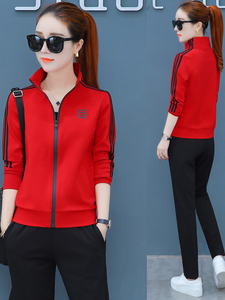 Large size sports suit women Spring and Autumn 2020 Spring and Autumn long sleeve thick cotton T two piece Korean Leisure running sportswear