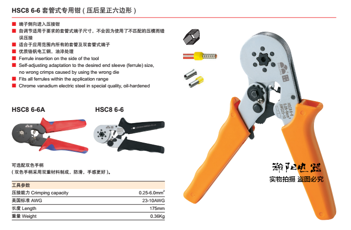 Huasheng Original Factory Obsessed with your type self-adjustable needle-shaped tubular terminal crimping pliers HSC8 6-6